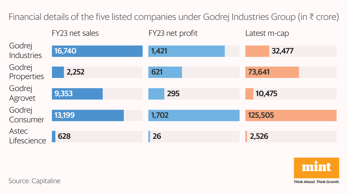 Meanwhile, families of brothers Nadir and Adir Godrej will inherit listed companies Godrej Industries Ltd, Godrej Properties Ltd, Godrej Agrovet Ltd, Godrej Consumer Products Ltd and Astec Lifescience Ltd, spanning consumer products, chemicals, and real estate, among others. Called Godrej Industries Group (GIG), it will be chaired by Nadir Godrej. His nephew Pirojsha, executive vice-chairperson, will succeed Nadir in August 2026.